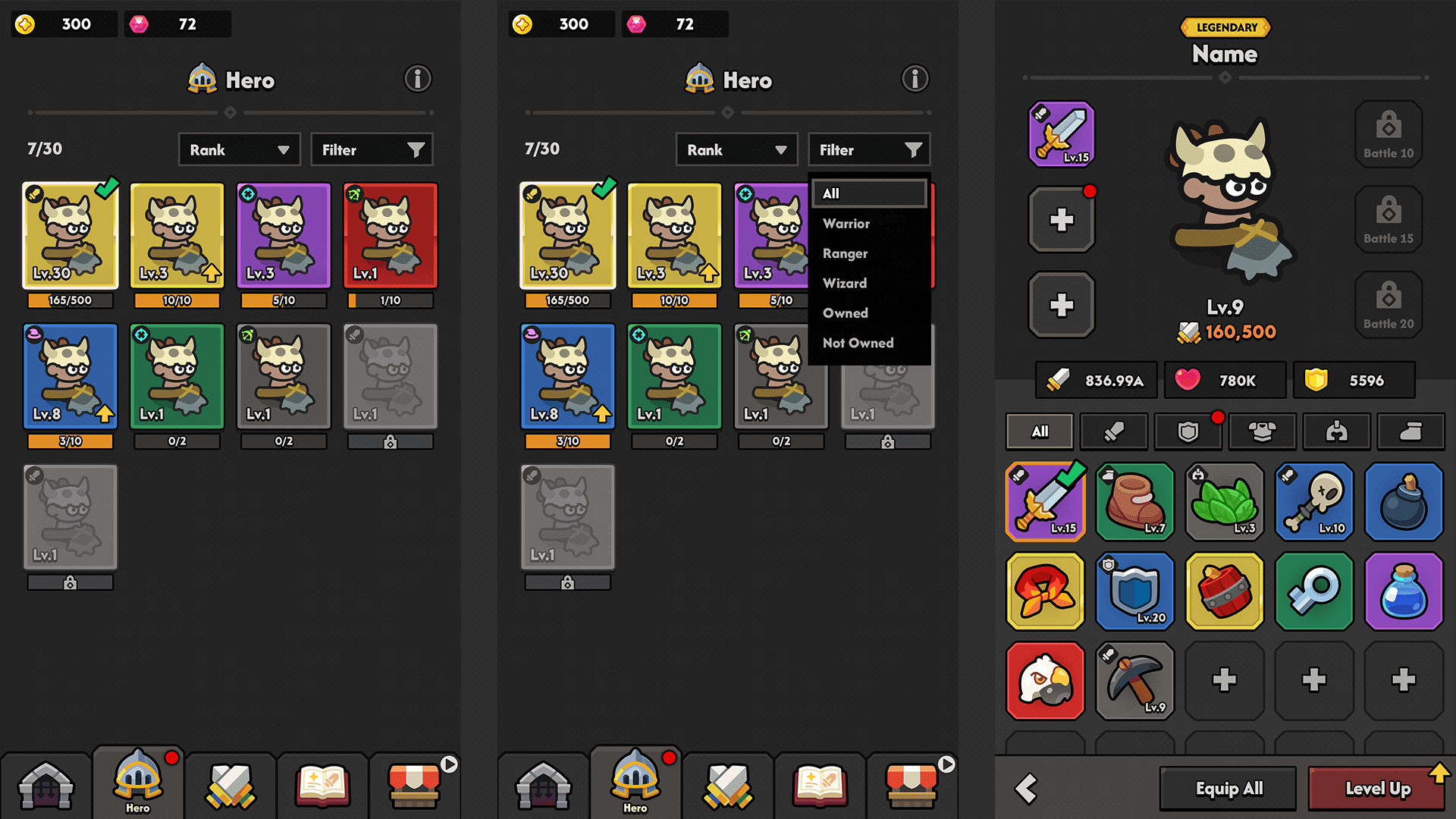 • CharacterParts (Small, Medium, Large): 6 characters with separated Body, Head, Weapon parts.