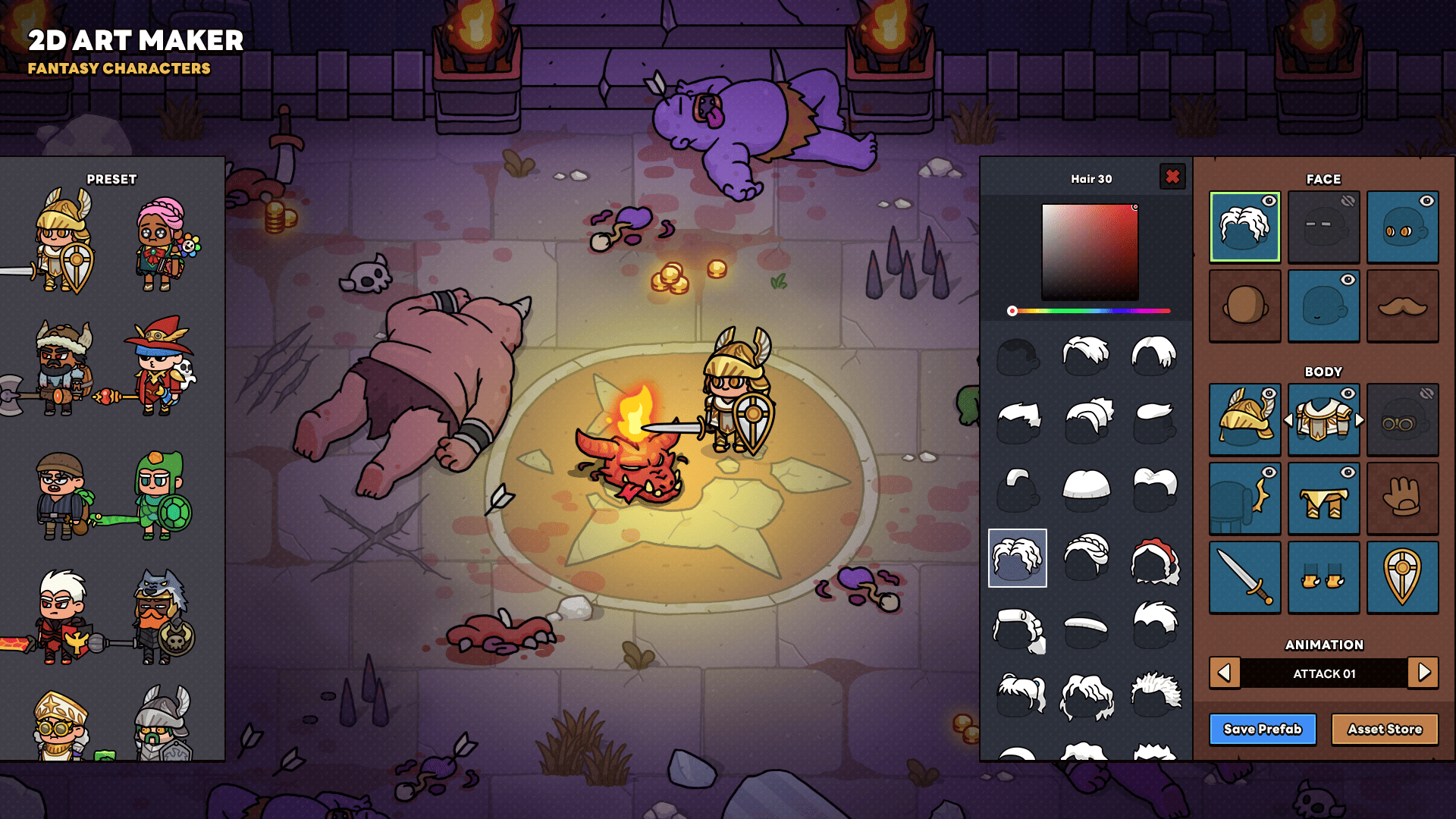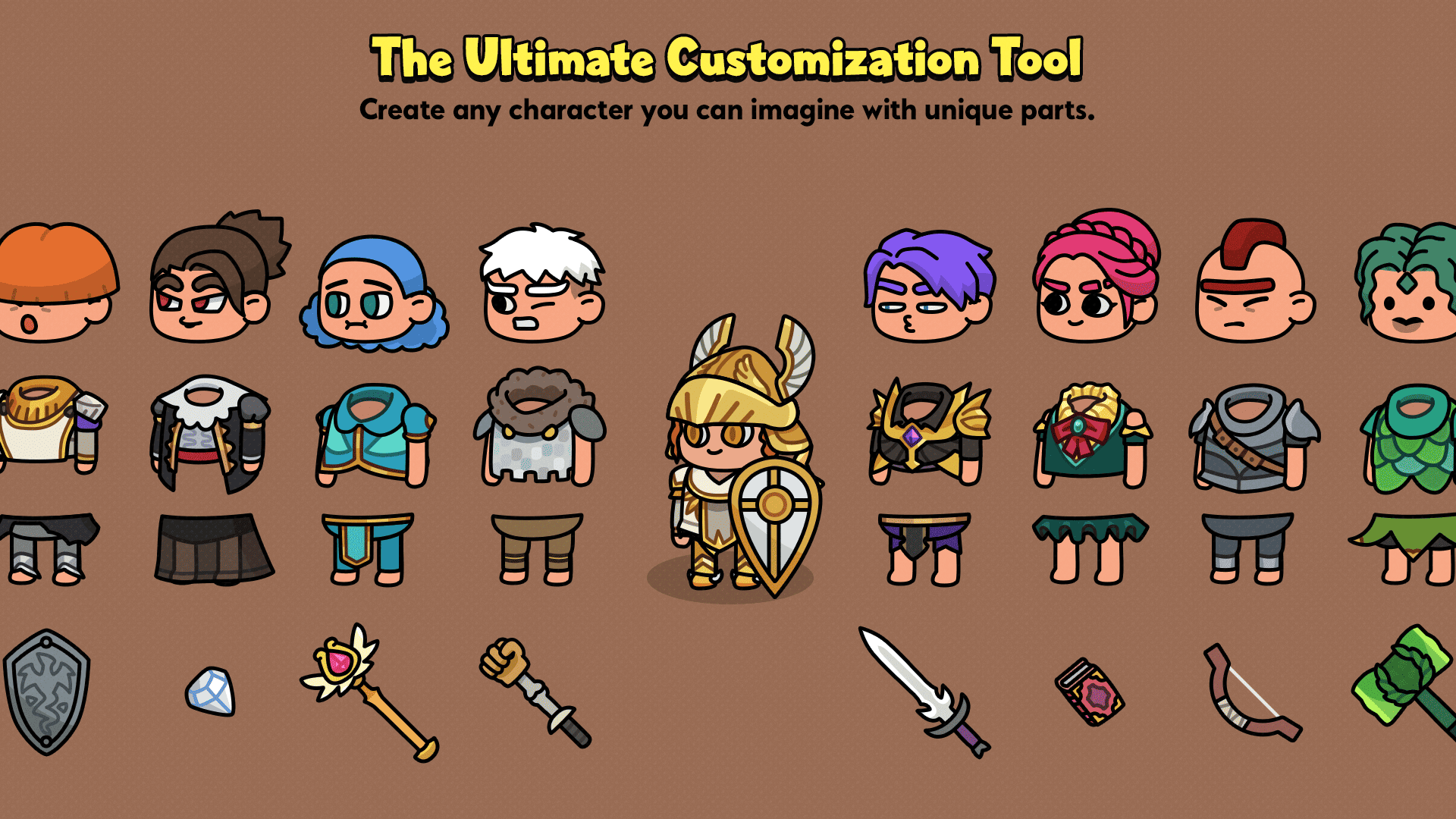 Craft your own fantasy RPG hero with over 470 modular parts. Includes Spine animations, presets, and a custom editor, making it quick and easy to create high-quality characters.