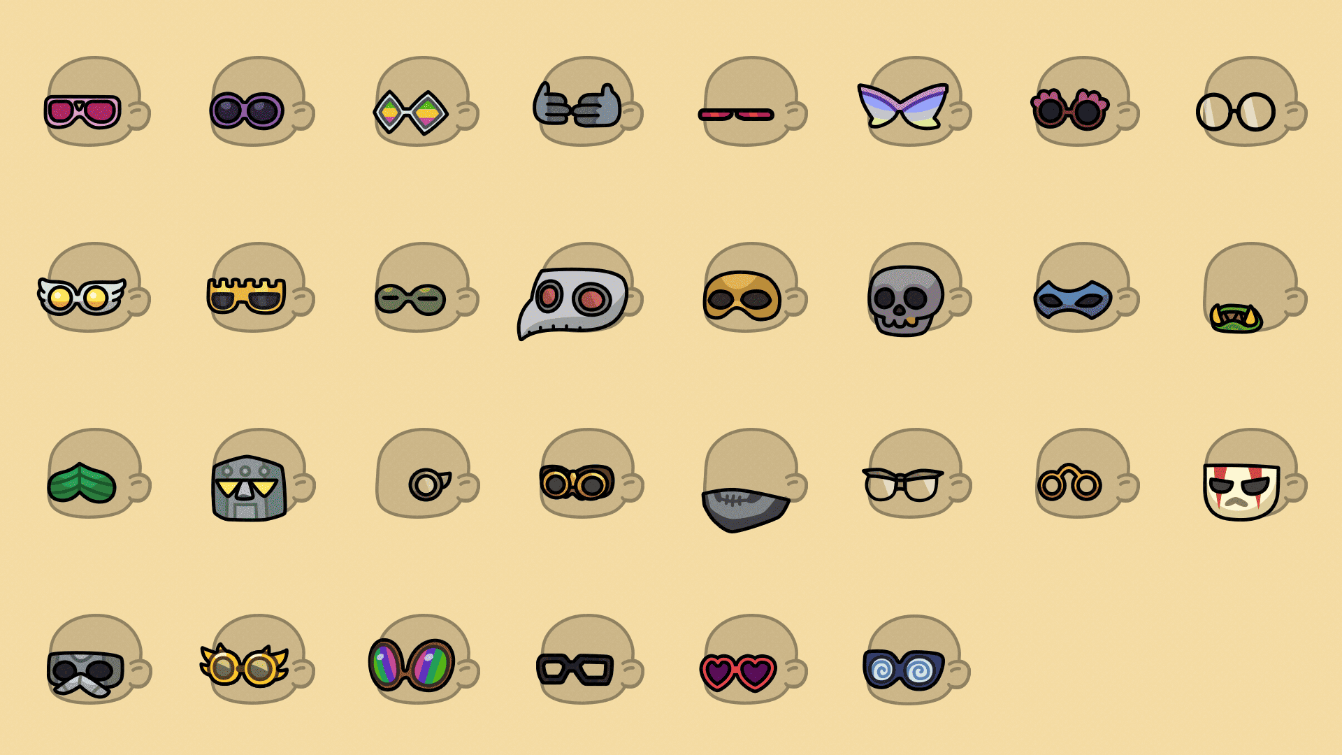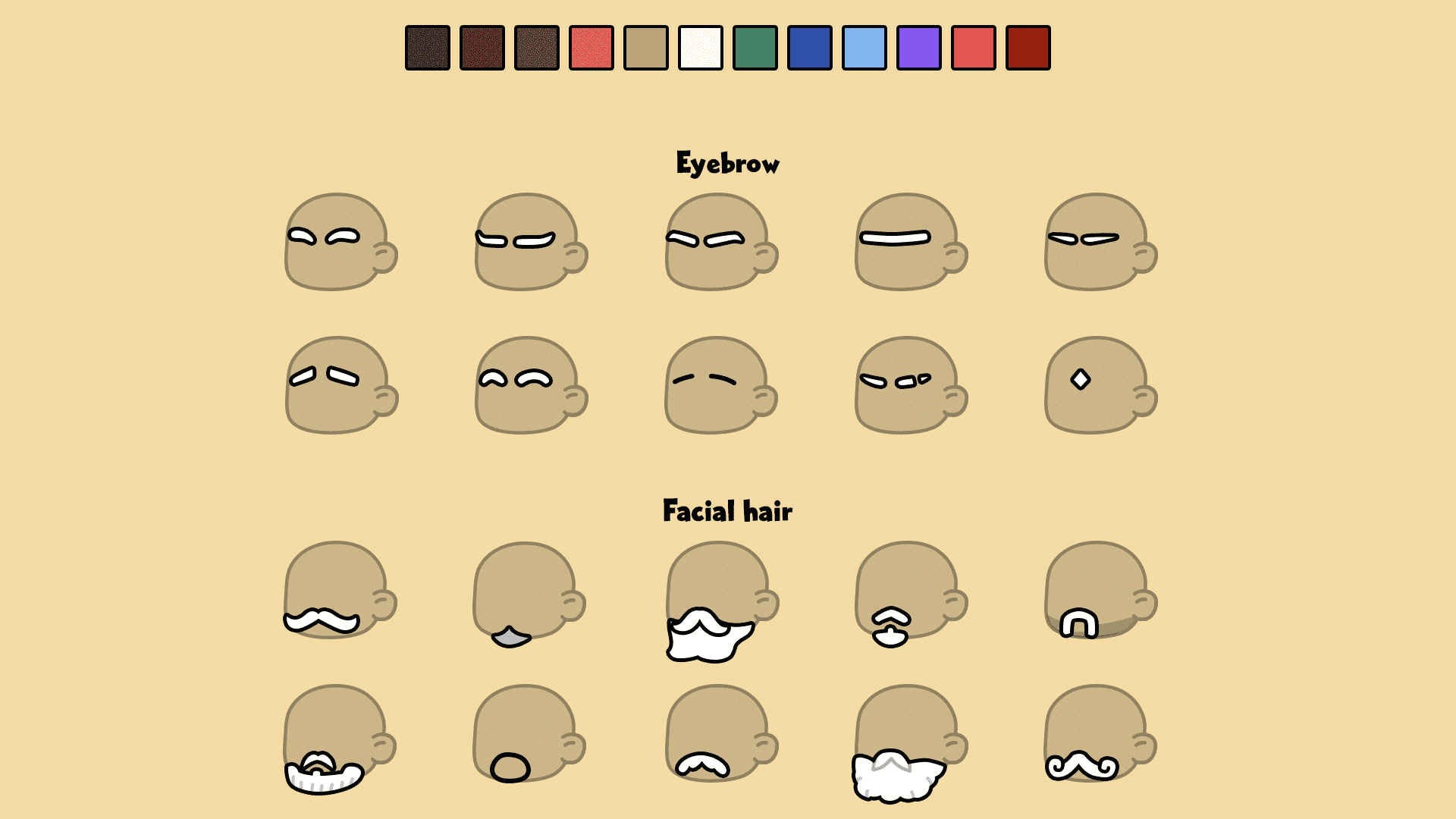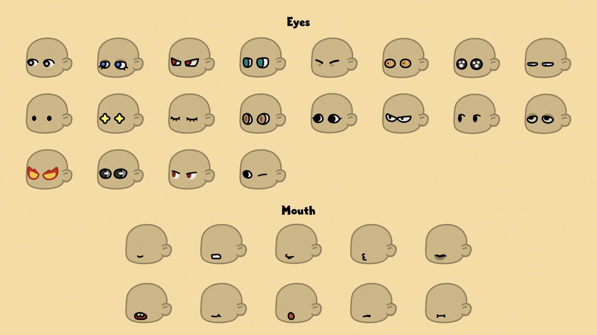 • Beard 10, Brow 10, Eyes 20, Mouth 10