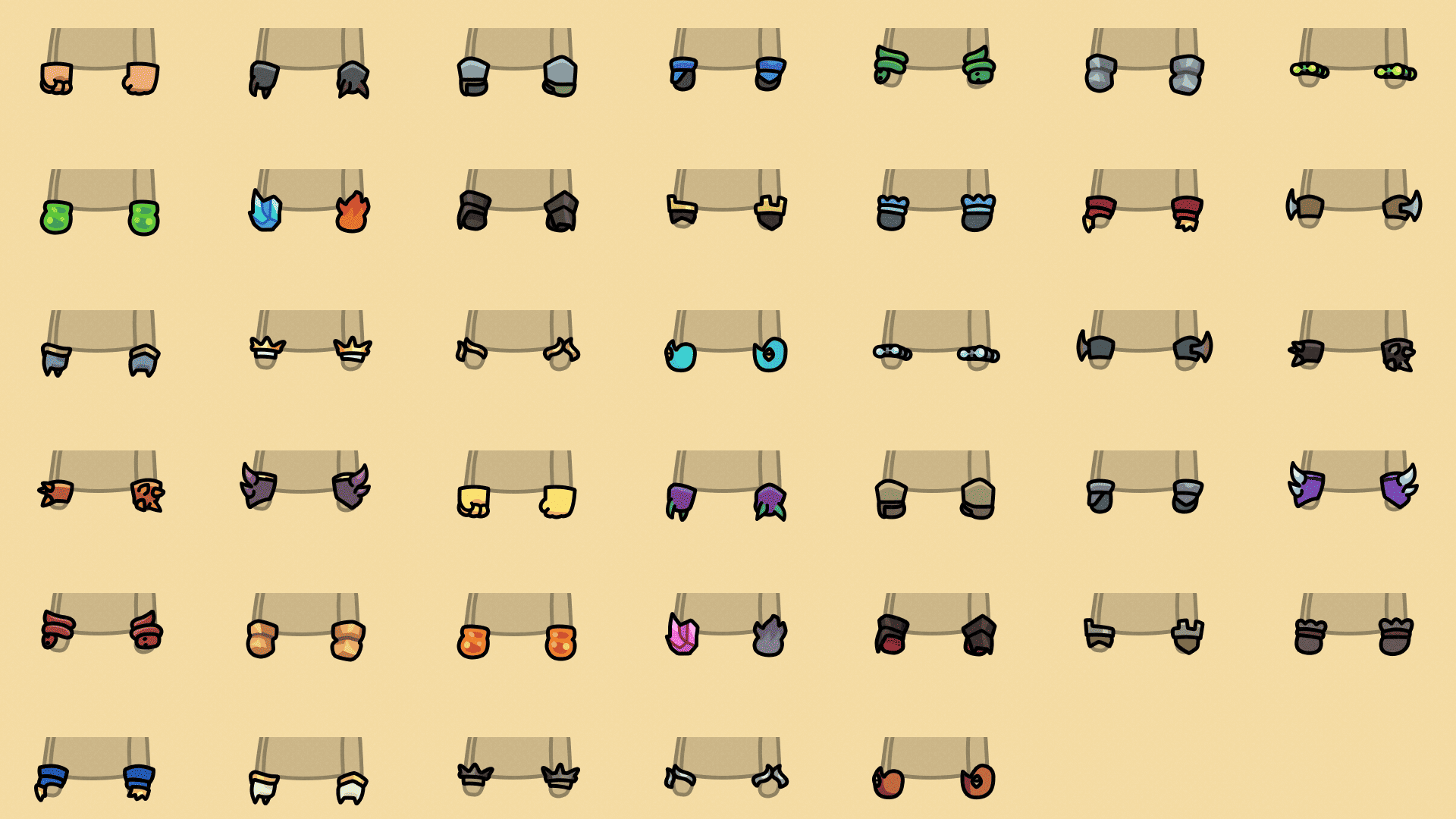 • Tops 60, Bottoms 50, Boots 30, Gloves 40