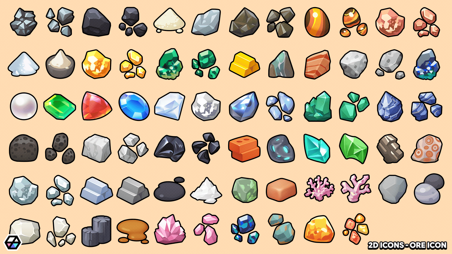 - 70 unique ore, gem, and mineral icons