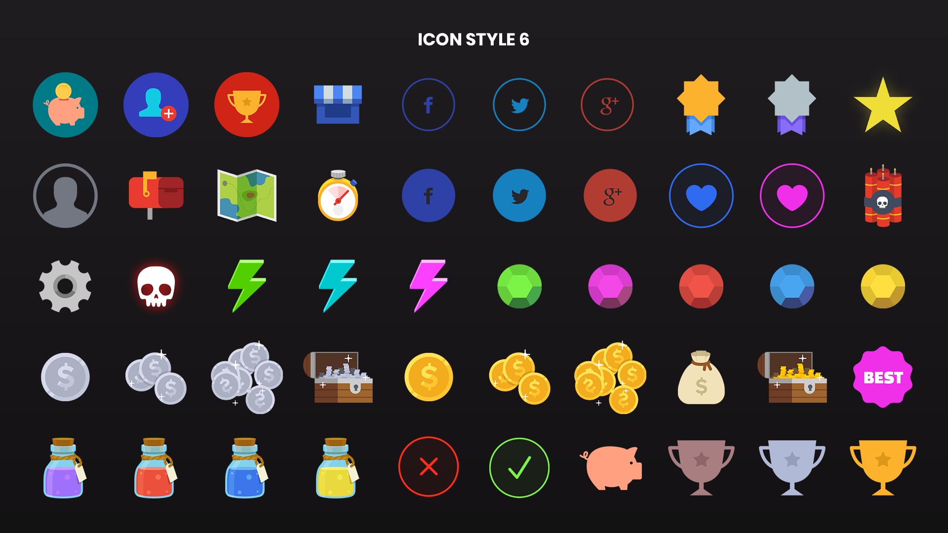 The ultimate all-in-one icon pack! Includes 13 different styles with a total of 750 icons and 3750 PNG files across multiple resolutions. Perfect for any genre or platform.