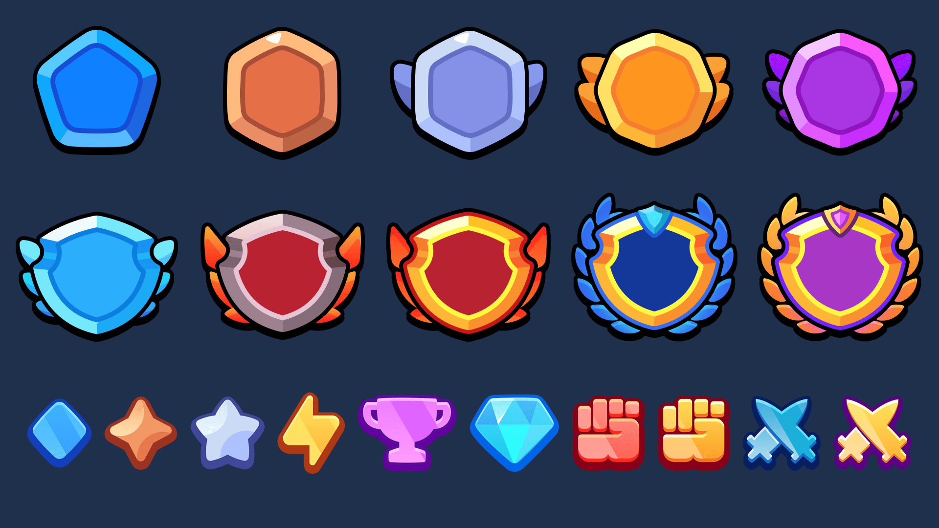 These icons are suitable for character ranks, item tiers, PvP leagues,