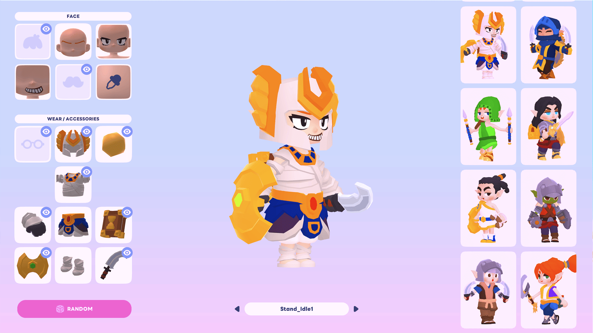With over 1,000 parts, you can create various characters such as priests, wizards, knights, orcs, and thieves. Combine different facial expressions, outfits, and various tools to bring your own unique character to life.