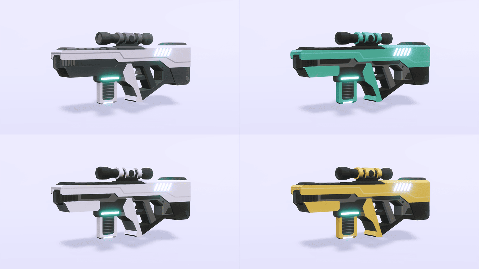 • Low-poly style sci-fi gun models suitable for sci-fi genres