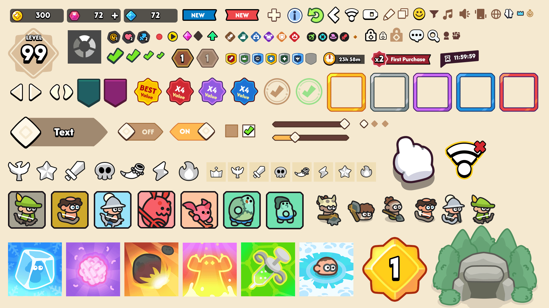 ALL visual elements: Icons, Backgrounds, Character illustrations
