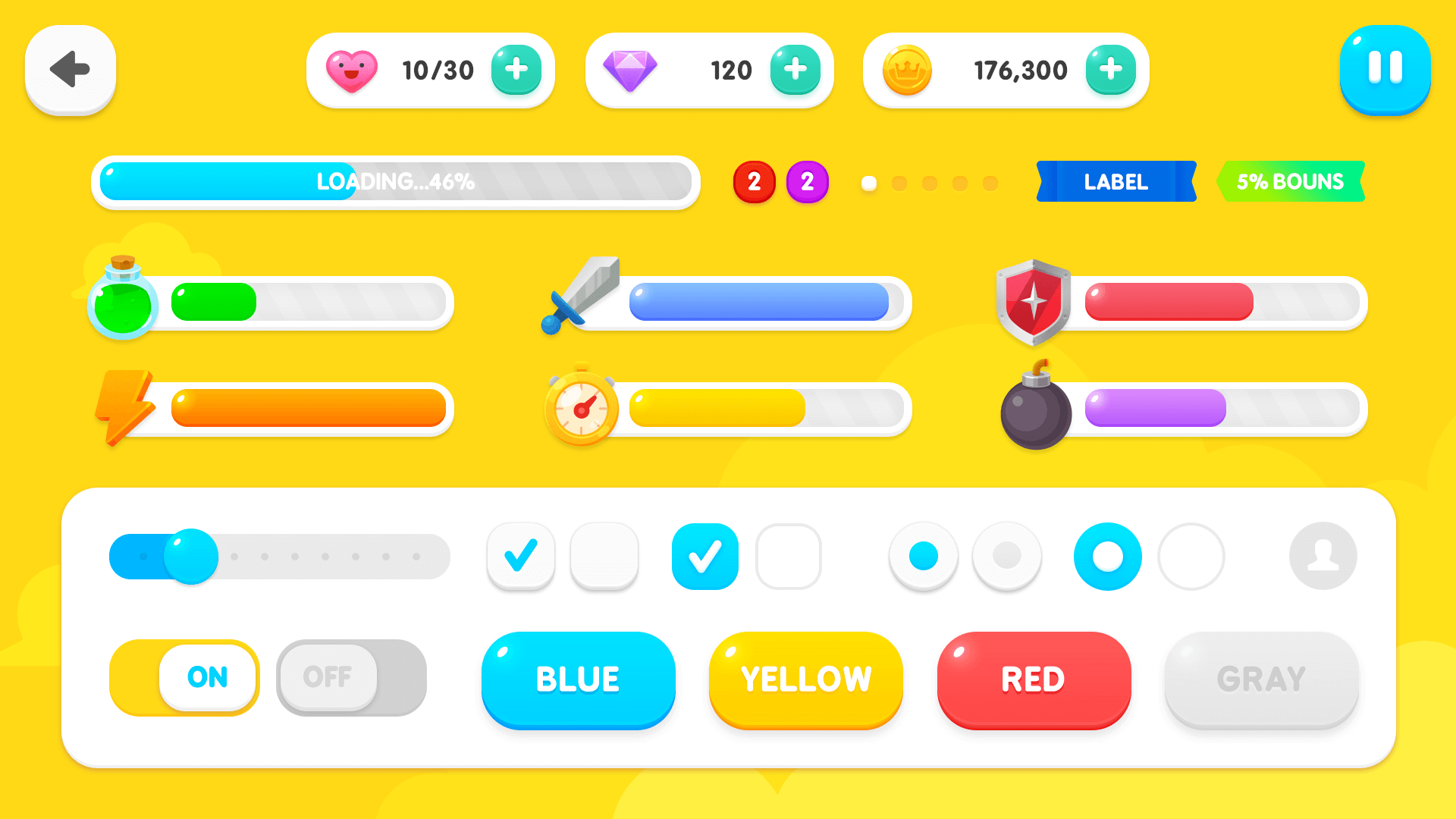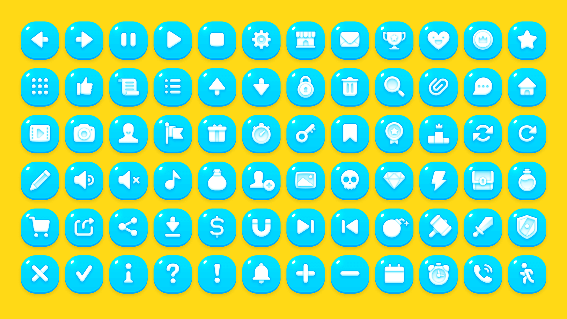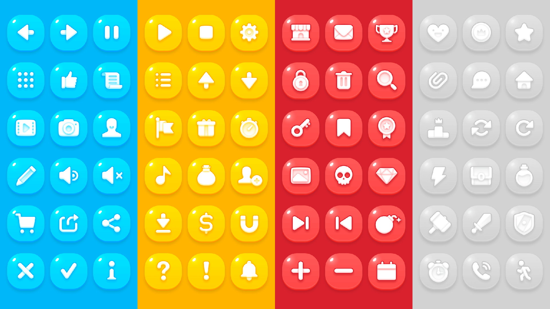• 72 button icons (Blue, Gray, Red, Yellow)